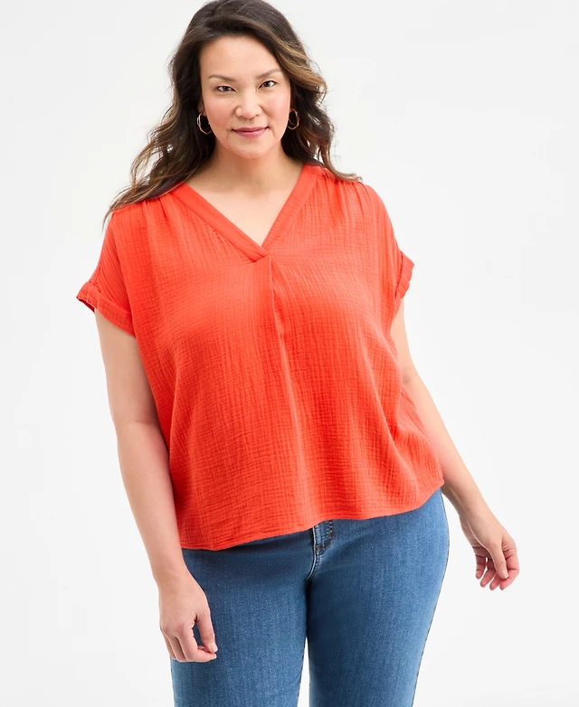 Style & Co Plus Button-Front Short-Sleeve Shirt, Exclusively at Macy's