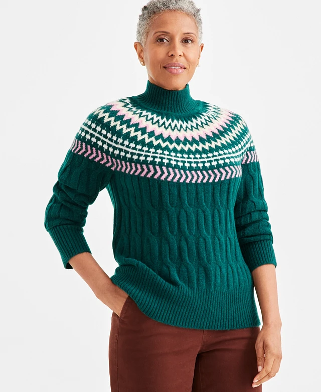 Style & Co Women's Fair Isle Mockneck Cable-Knit Sweater, Created for Macy's