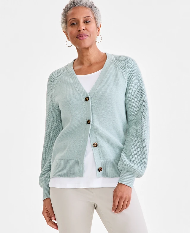 Style & Co Petite Open-Stitch Button-Front Cotton Cardigan, Macy's Exclusive