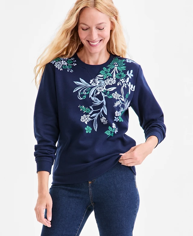 Style & Co Women's Printed Fleece Sweatshirt, Macy's Exclusive