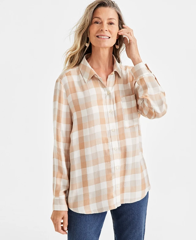 Style & Co Women's Plaid Button-Down Perfect Shirt, Exclusively at Macy's