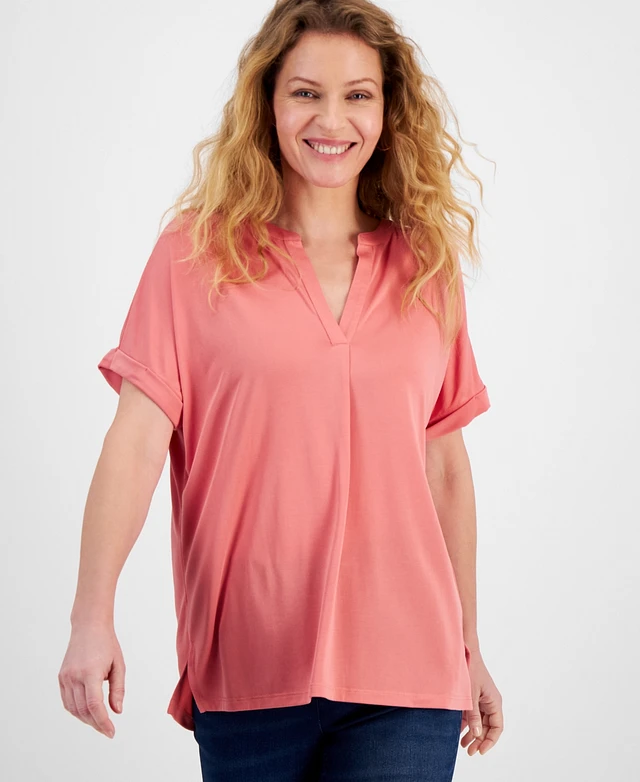 Style & Co Women's Split-Neck Short Sleeve Knit Shirt
