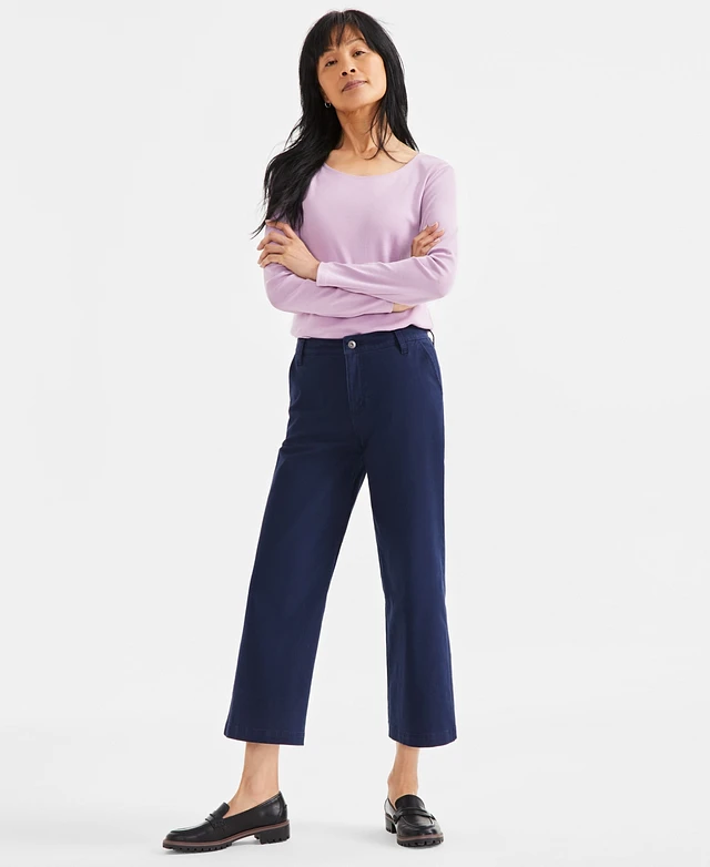 Style & Co Women's Twill Wide-Leg Cropped Pants, Exclusively at Macy's