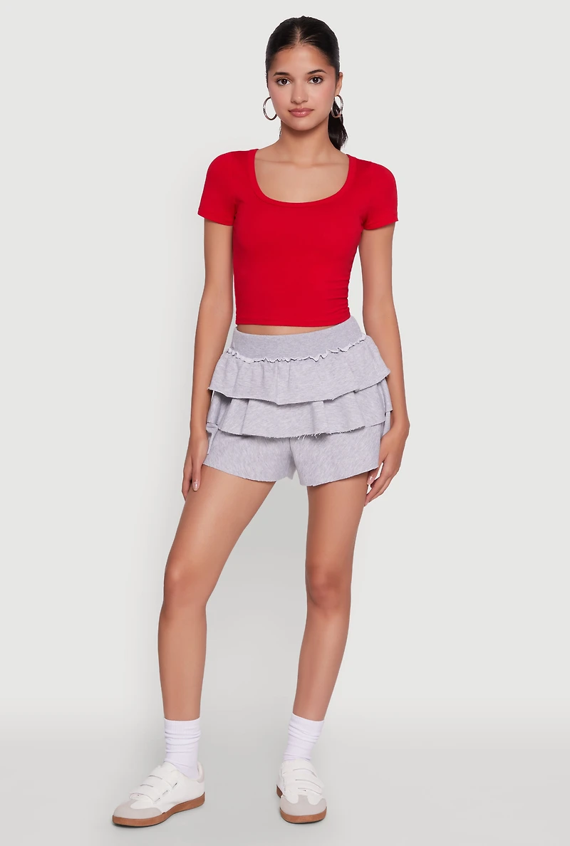 Stylish Ruffled High Waist Tiered Shorts