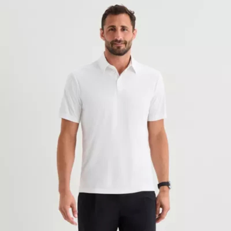 This men's Stylus polo shirt is a casual tailored essential for your wardrobe. It's made from breathable woven fabric with a spread collar, short sleeves and a three-button placket. Wear it with chino shorts or jeans.