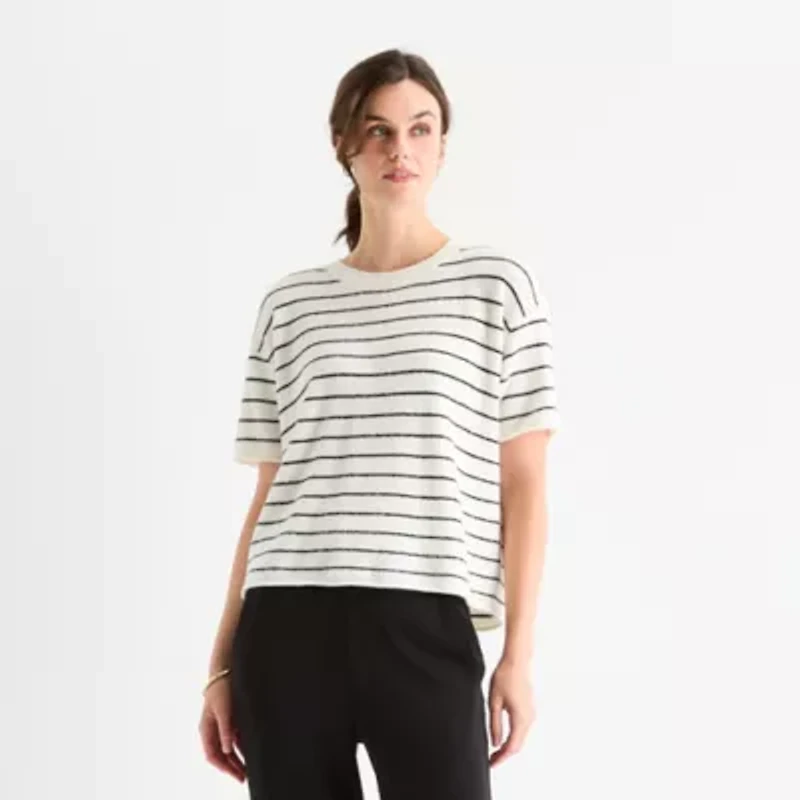 Stylus Womens Crew Neck Short Sleeve Pullover Sweater