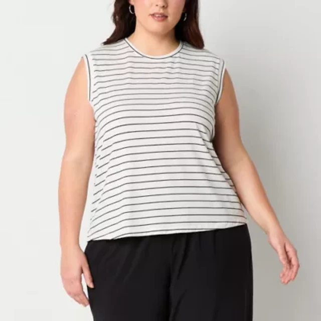 Stylus Womens Plus Crew Neck Sleeveless T-Shirt
