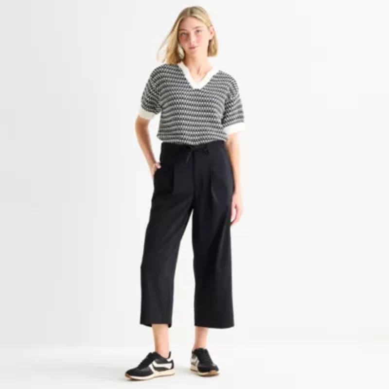 This Stylus pair of women's cropped pants is an effortless off-duty pair you can dress up or down. Made from a woven blend with a hint of stretch, this straight-leg pair has pleats and a tie waistband. Wear them with a tee or blouse.