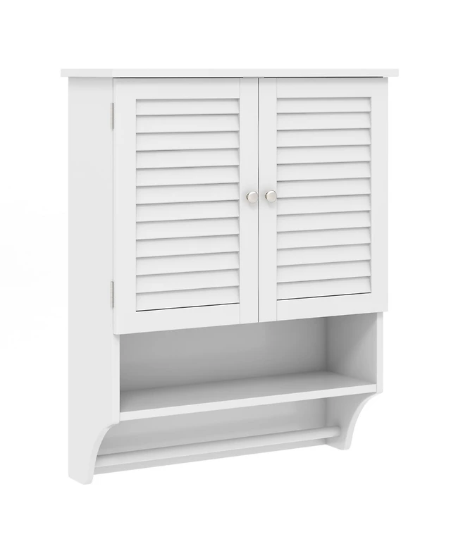 Bathroom Wall Mounted Medicine Cabinet with Louvered Doors & Towel Bar