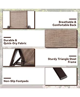 Enjoy outdoor relaxation with our sturdy patio chair, crafted from a durable powder-coated steel frame for long-lasting use. Its comfortable design features breathable fabric, curved armrests, and a high back for optimal support. Lightweight and compact, this versatile chair is perfect for any outdoor setting and is easy to assemble and maintain.