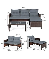 Sugift 3 Pieces Outdoor Patio Corner Rattan Sofa Set-Grey