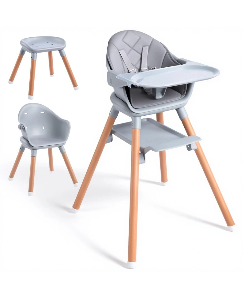 Designed to grow with your child, this versatile high chair easily converts from a full-size 35"" high chair to a 24"" toddler chair. A two-level adjustable footrest and double detachable tray provide comfort and convenience for mealtime or play. Built with a sturdy triangular frame, anti-slip pads, and a 5-point harness, it delivers dependable safety with a modern look that fits any home.