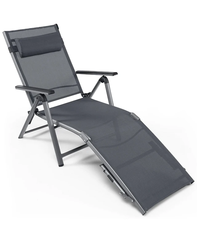 Sugift Adjustable Patio Chaise Folding Lounge Chair with Backrest-Gray