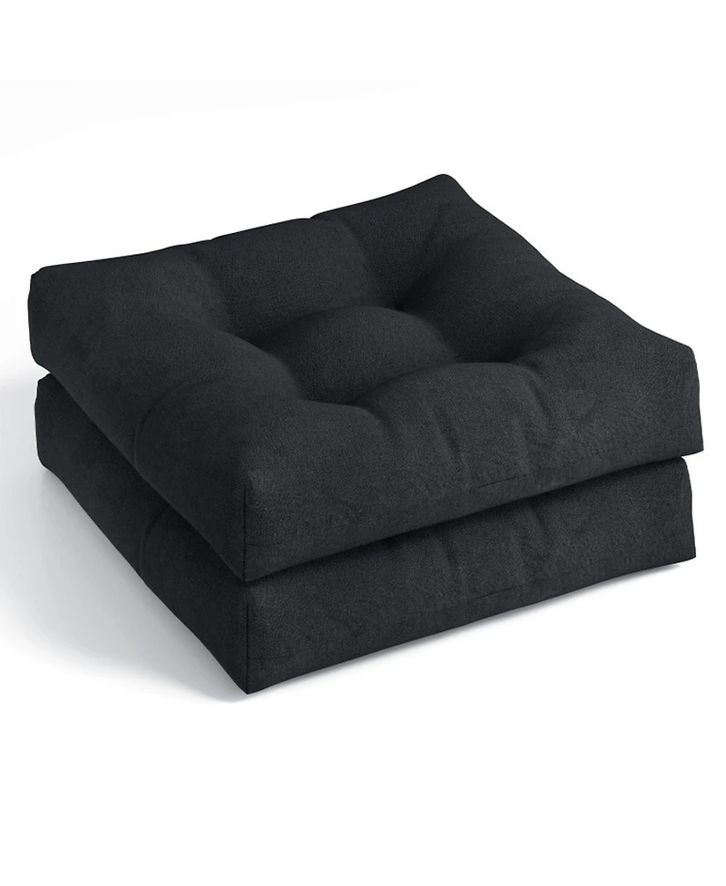 Refresh your favorite seats with this two-piece cushion set, designed to add comfort indoors or outside. Plush cotton fill helps ease pressure while the reversible design extends wear. Water-resistant polyester fabric stands up to sun and spills, making each 21"" x 21"" x 4"" cushion a versatile everyday upgrade.