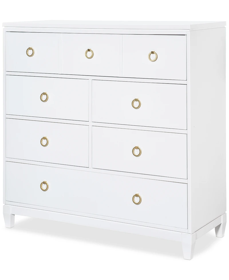 Fresh designs combine with a fresh finish to create the Summerland collection. Elements such as floating tops, tapered feet, flat drawer fronts, and simple shapes lend the perfect backdrop for easily creating a beautifully styled space. Gold ring pulls and knob hardware adds a high-end touch. The Summerland collection is offered in both inkwell blue and crisp white, giving you the option to either add a pop of color or a fresh clean look to your space.