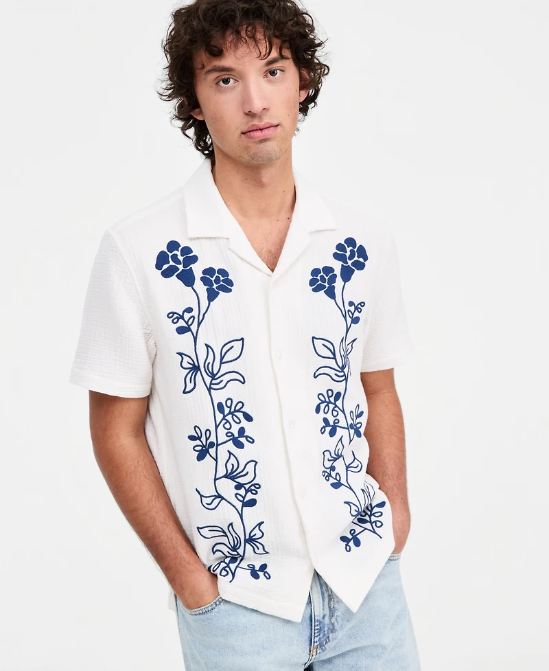Sun + Stone Men's Floral Embroidered Cotton Camp Shirt, Macy's Exclusive
