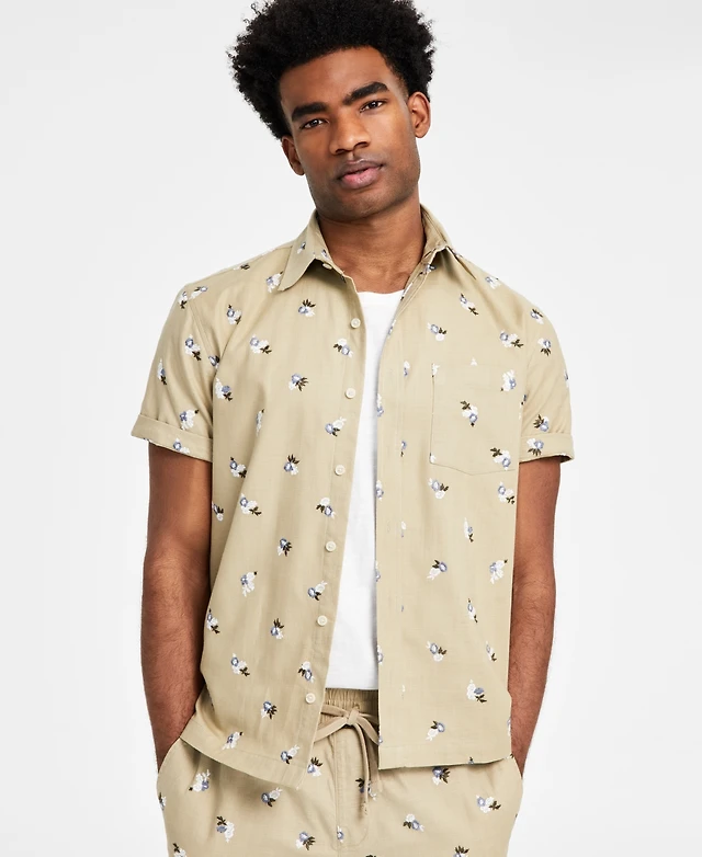 Sun + Stone Men's Knox Regular-Fit Embroidered Floral Button-Down Shirt, Exclusively at Macy's