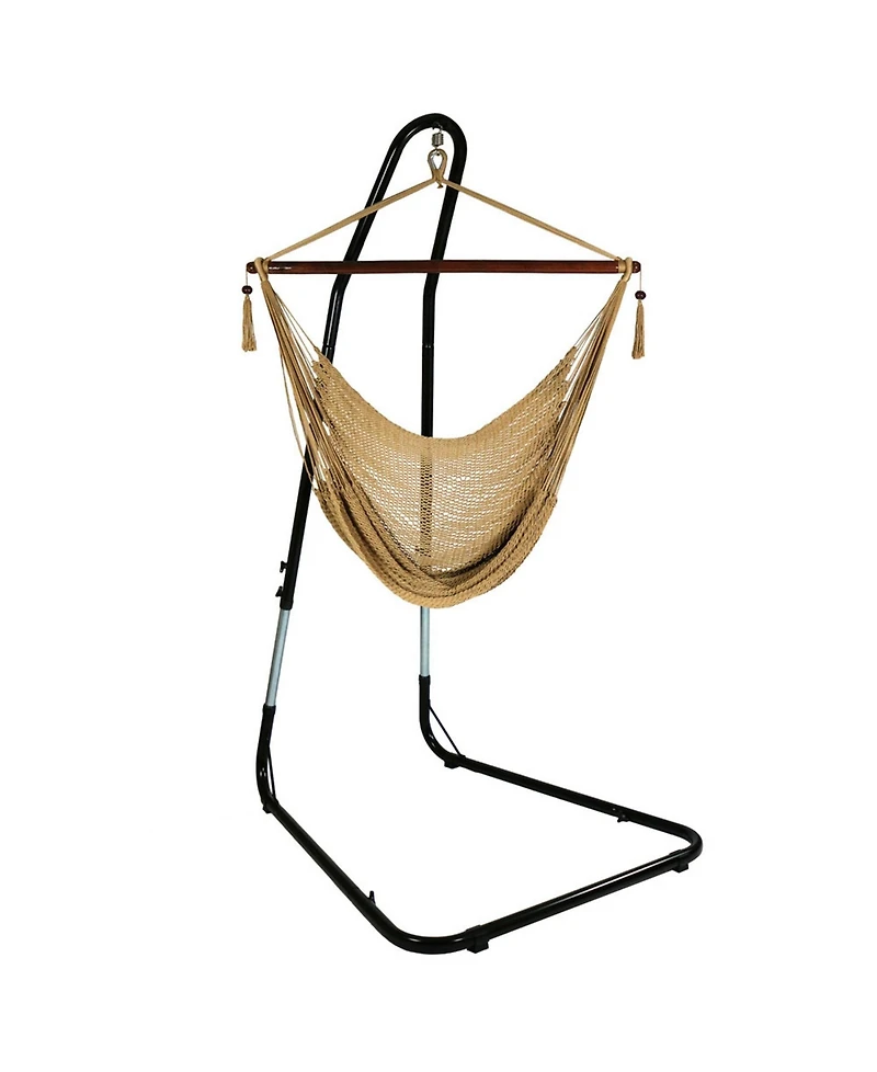 Sunnydaze Decor Caribbean Style Extra Large Hanging Rope Hammock Chair Swing with Stand - 300 lb Weight Capacity