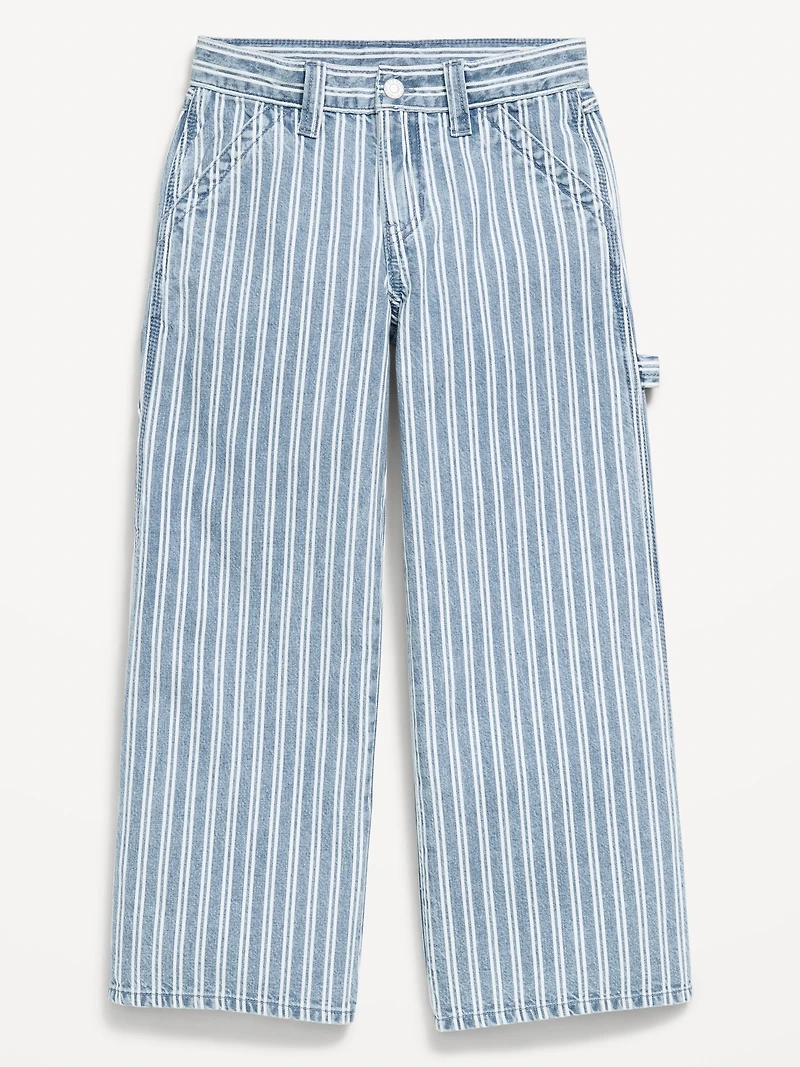 Super Baggy Striped Wide-Leg Carpenter Jeans for Girls