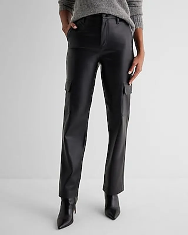 Super High Waisted Faux Leather Straight Cargo Pant Black Women's Short