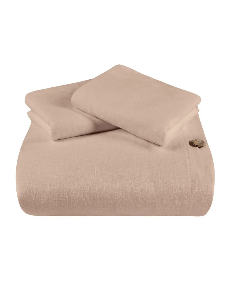 Bring your home decor to another level with the Cotton Linen Blend Solid 3-Piece Duvet Cover Set. Created with both quality and style in mind, this set beautifully combines 55% Cotton and 45% Linen for a smooth and soft. Lightweight and breathable, this set is ideal for year round use.