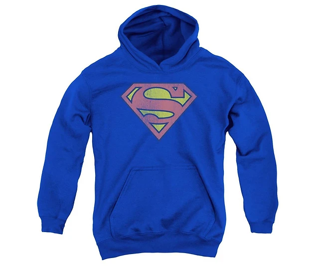 Superman Boys Dc Comics Youth Retro Supes Logo Distressed Pull Over Hoodie / Hooded Sweatshirt