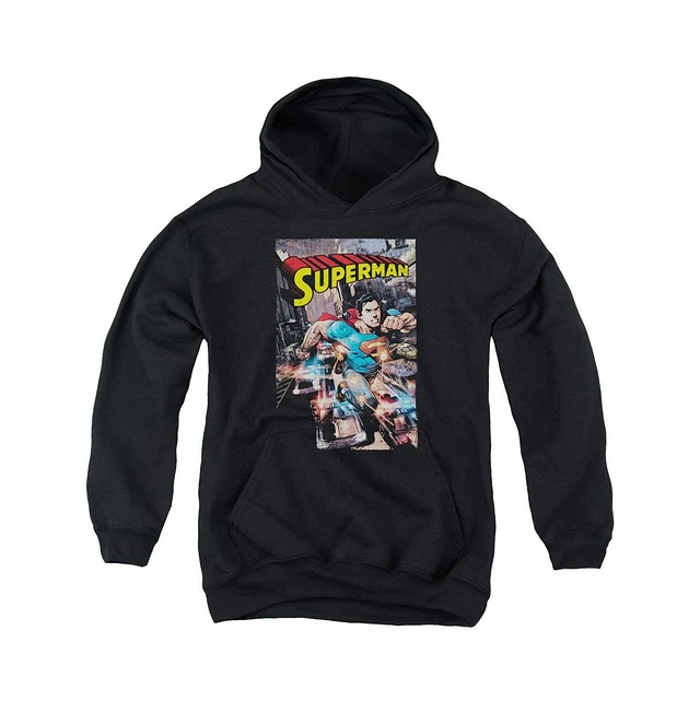 Superman Boys Youth Action One Pull Over Hoodie / Hooded Sweatshirt