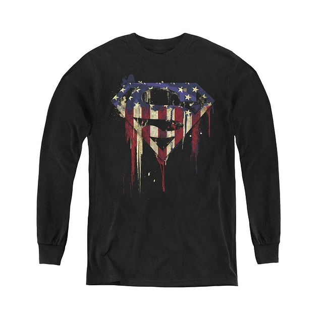 Superman Boys Youth U S Shield Long Sleeve Sweatshirts