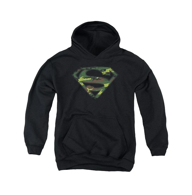 Superman Boys Youth Distressed Camo Shield Pull Over Hoodie / Hooded Sweatshirt