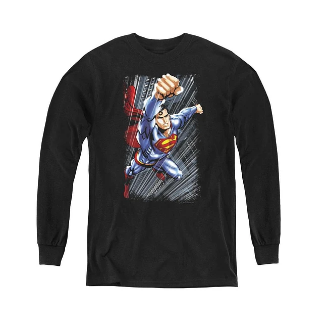 Superman Boys Youth Through The Fire Long Sleeve Sweatshirts