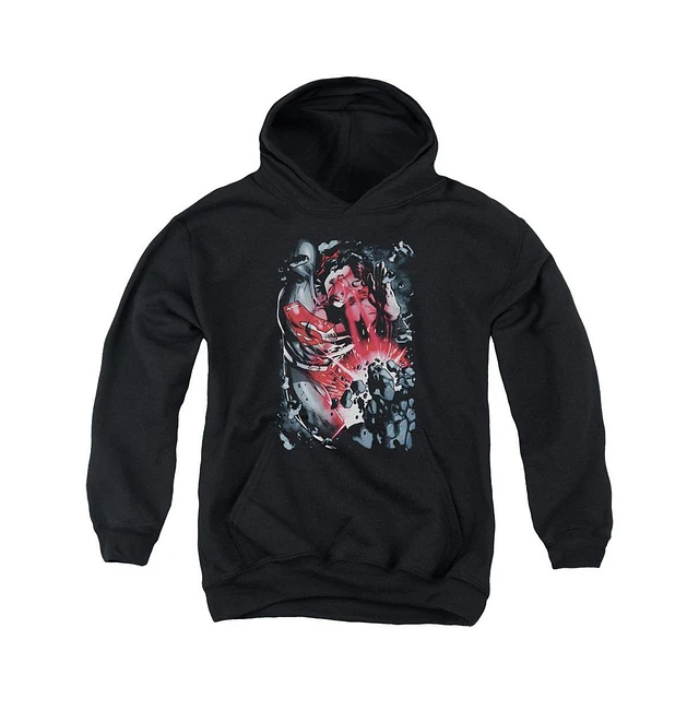 Superman Boys Youth Through The Fire Pull Over Hoodie / Hooded Sweatshirt