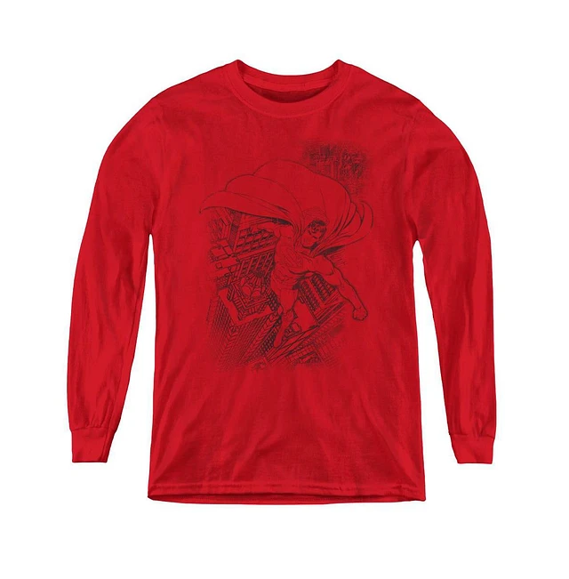 Superman Boys Youth Skyline Long Sleeve Sweatshirts
