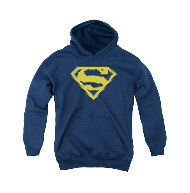 Superman Boys Youth Maize & Blue Shield Pull Over Hoodie / Hooded Sweatshirt
