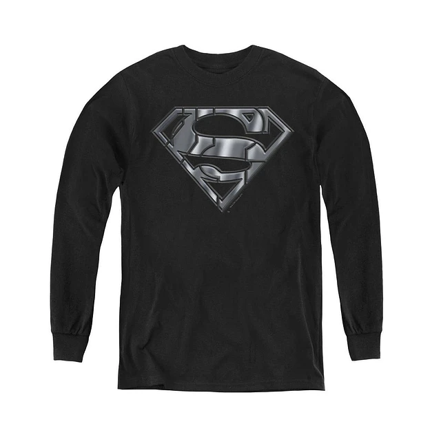 Superman Boys Youth Man Of Steel Shield Long Sleeve Sweatshirts