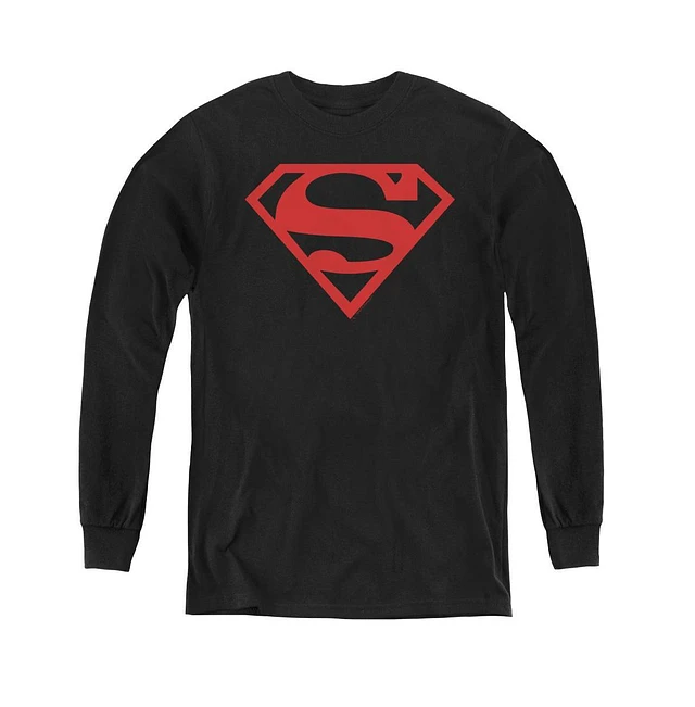 Superman Boys Youth Red On Black Shield Long Sleeve Sweatshirts