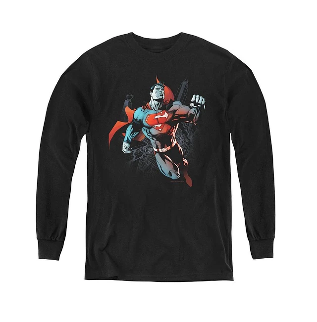 Superman Boys Youth Skyline Long Sleeve Sweatshirts