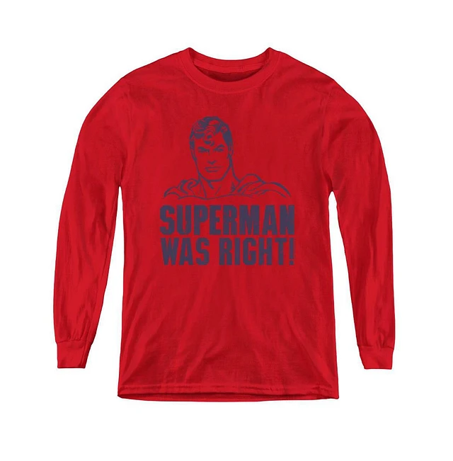 Superman Boys Youth Was Right Long Sleeve Sweatshirts