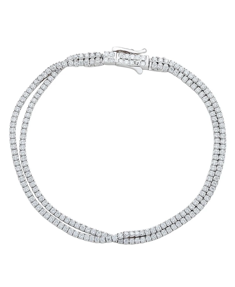 Suzy Levian New York Sterling Silver Double-Strand Pave Cubic Zirconia Tennis Bracelet