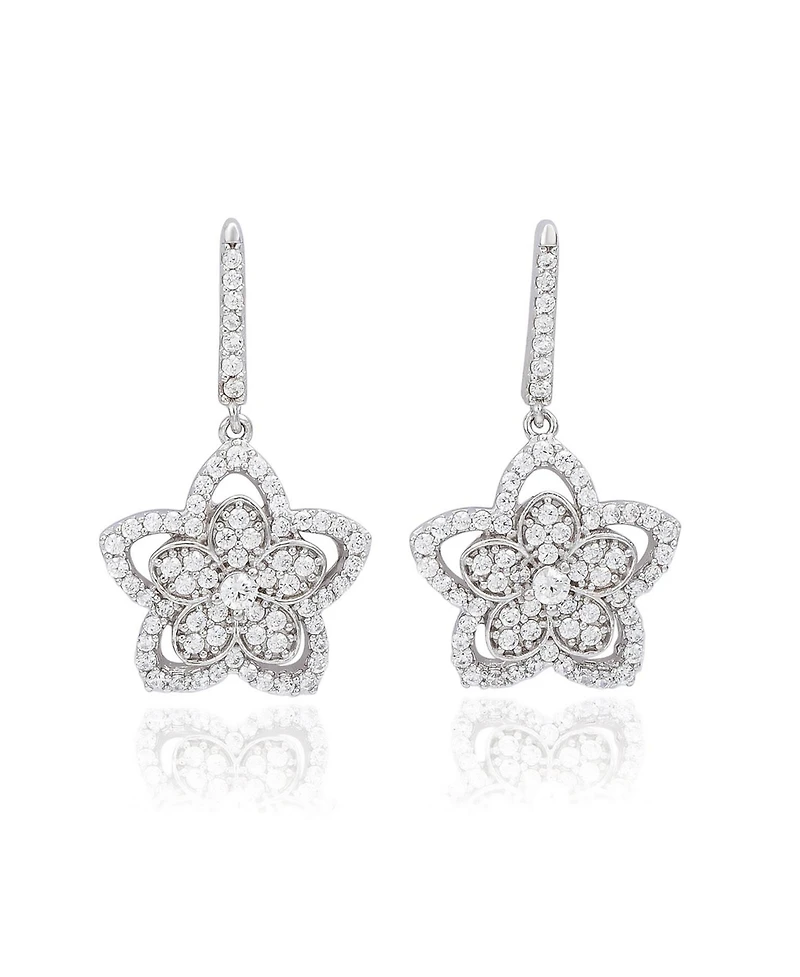 Suzy Levian New York Sterling Silver Pave Cubic Zirconia Flower Halo Drop Dangle Earrings