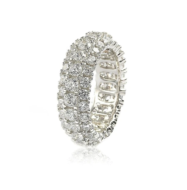 Suzy Levian Sterling Silver Cubic Zirconia 3 Row White Eternity Band