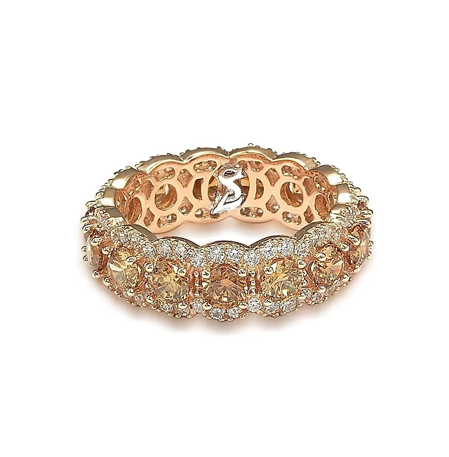 Suzy Levian Sterling Silver Cubic Zirconia Framed Emerald Cut Brown Eternity Band