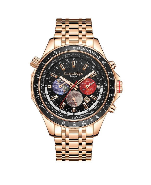 Swan and Edgar SE0060S Swan & Edgar Hand Assembled World Timer Mechanical Quartz Hybrid Rose