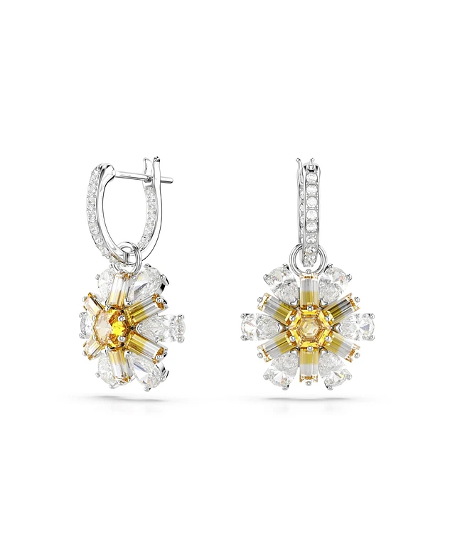 Swarovski Flower, Yellow, Rhodium Plated Idyllia Drop Earrings