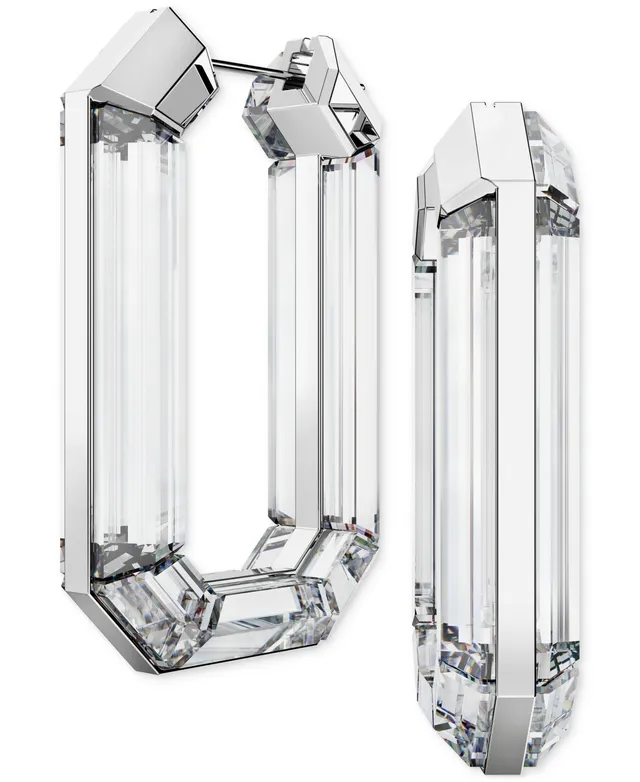 Swarovski Silver-Tone Crystal Small Octagon Hoop Earrings