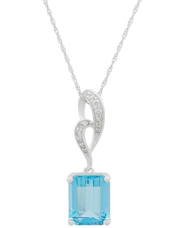 Swiss Blue Topaz (4 ct. t.w.) & Diamond (1/10 ct. t.w.) Swirl 18" Pendant Necklace in 14k White Gold