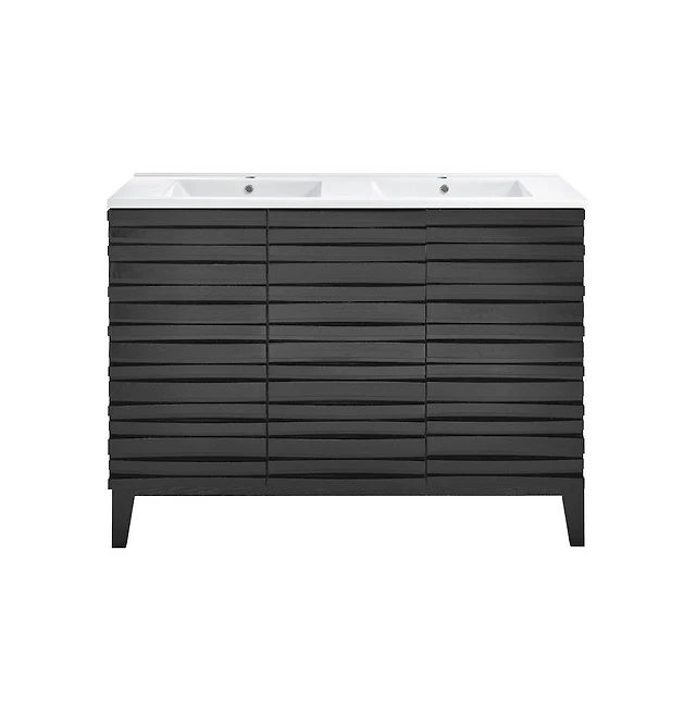 Swiss Madison 48 in. Black Oak, Double Basin Bathroom Vanity With White Ceramic Sink Top