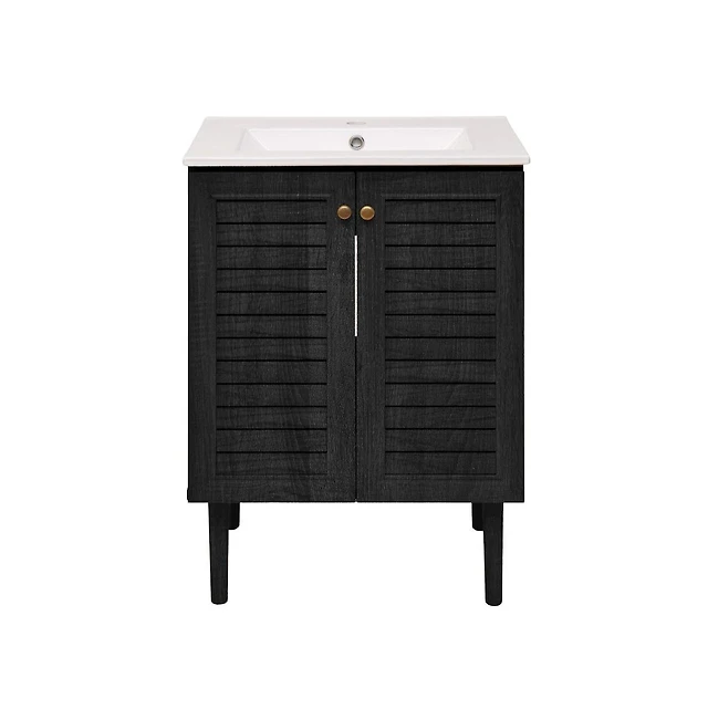 Swiss Madison Bosse 24" Freestanding Bathroom Vanity in Black Oak with Sink Top