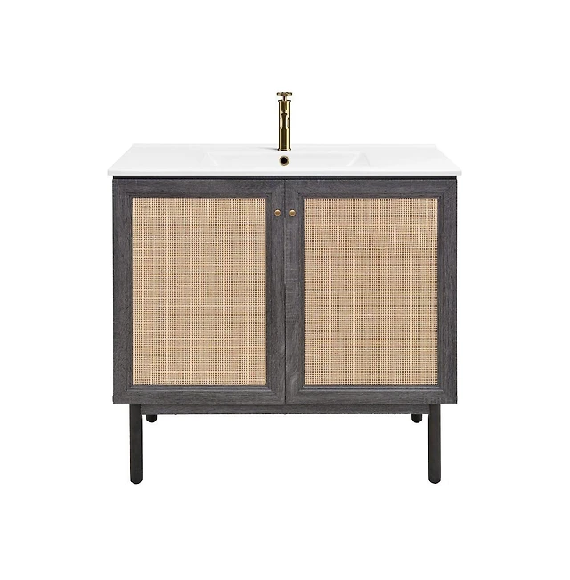 Chateau 36" Freestanding Bathroom Vanity in Black Oak with Sink Top