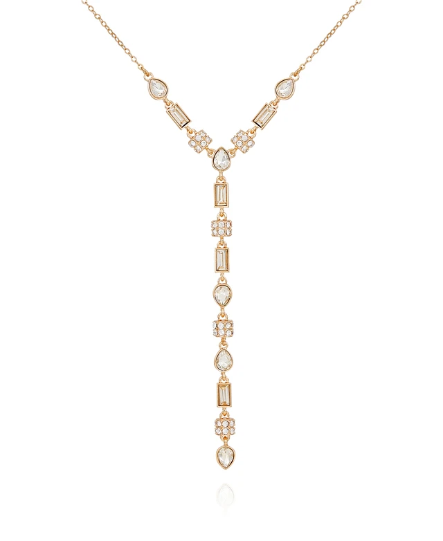 T Tahari Gold-Tone Clear Light Glass Stone Y Necklace