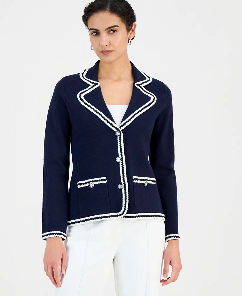 T Tahari Women's Three-Button Colorblocked-Trim Jacket
